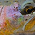 Kyle and I continued fishing upriver from Brent, while he continued to work the bottleneck. Kyle and I were getting into ‘bows pretty regularly, but nothing over 18″. A while later, Brent hollered for help again and I started to work my way down to give him a hand. As I was heading down, the fish came off. Fortunately for Brent, he was able to reconnect with the fish and bring him in. Once again, it was a beastly brown, rocking some awesome spotting and color patterns.